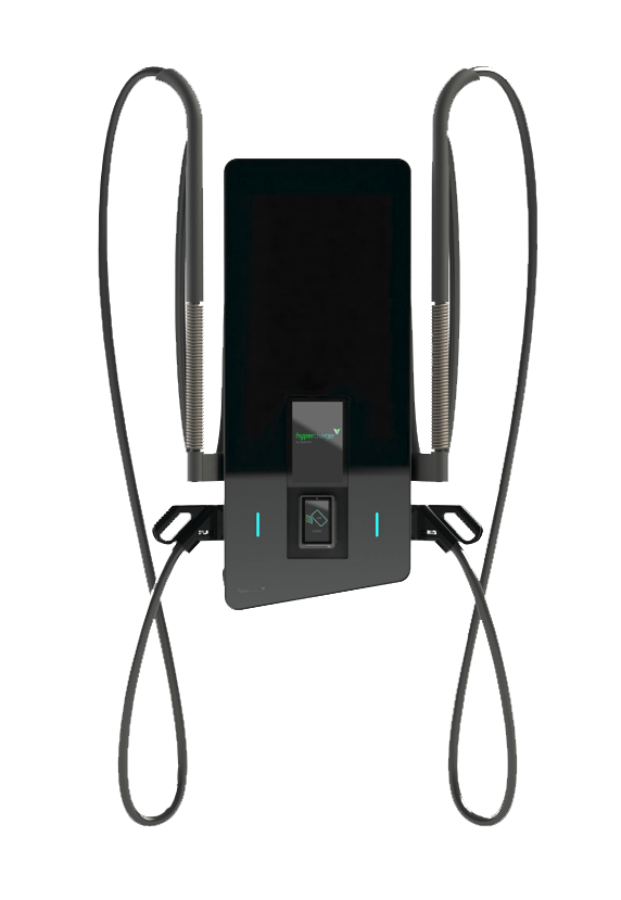 Kabel 2 x DC Der HYC von Alpitronic ermöglicht zeitgleiches Laden von 2 Autos mit bis zu 50 kW DC. Es ist die erste Ladestation auf dem Markt mit erhöhter Ladeleistung und der Möglichkeit einer Wandmontage.