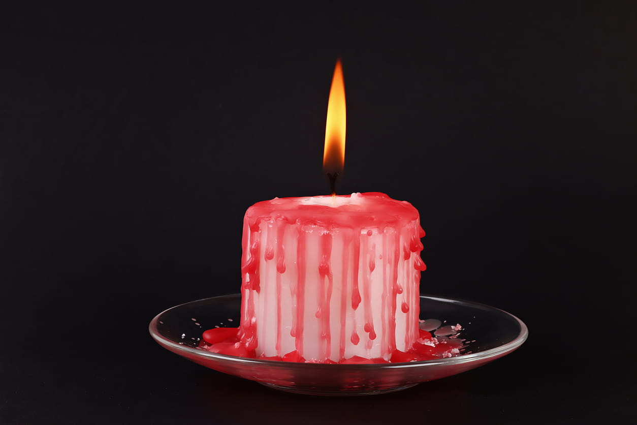 Prenez des bougies blanches et des bougies rouges et placez-les sur un support. Puis allumez les bougies rouges et laissez-les se consumer jusqu’à ce que la cire devienne liquide. Inclinez les bougies rouges au-dessus des bougies blanches et faites couler la cire tout autour pour créer l'effet de gouttes de sang.