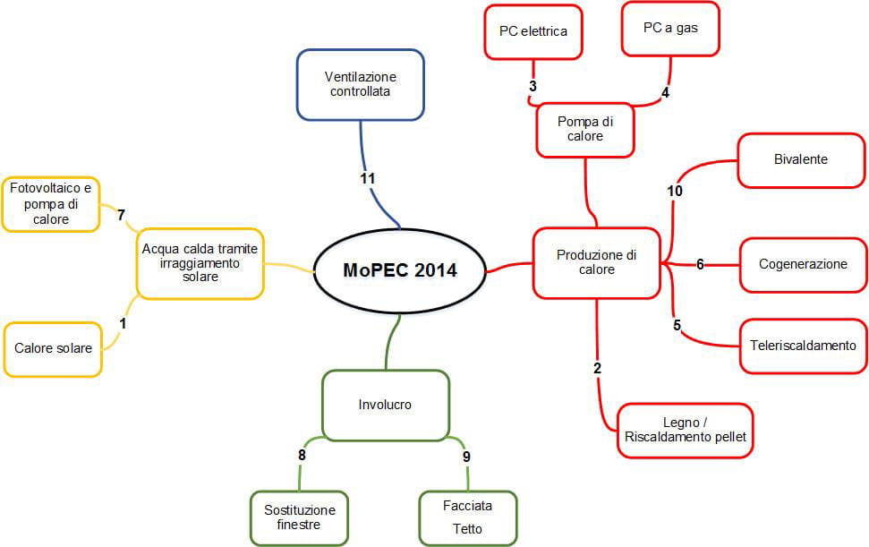Le 11 soluzioni standard offrono diverse possibilità per soddisfare i requisiti MoPEC 2014. Prevedono che in futuro, nella sostituzione di sistemi di riscaldamento a olio combustibile e a gas, il 10% dell’energia provenga da fonti rinnovabili o venga risparmiato tramite l’isolamento termico.