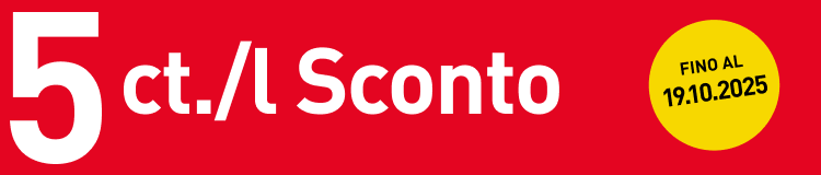 Approfitti di uno sconto di 5 ct./l al rifornimento di benzina o diesel presso tutte le stazioni di servizio munite di shop e le stazioni di servizio dotate di solo automatico della Migrol SA, vedi www.migrol.ch/stazioni fino al 19.10.2025.