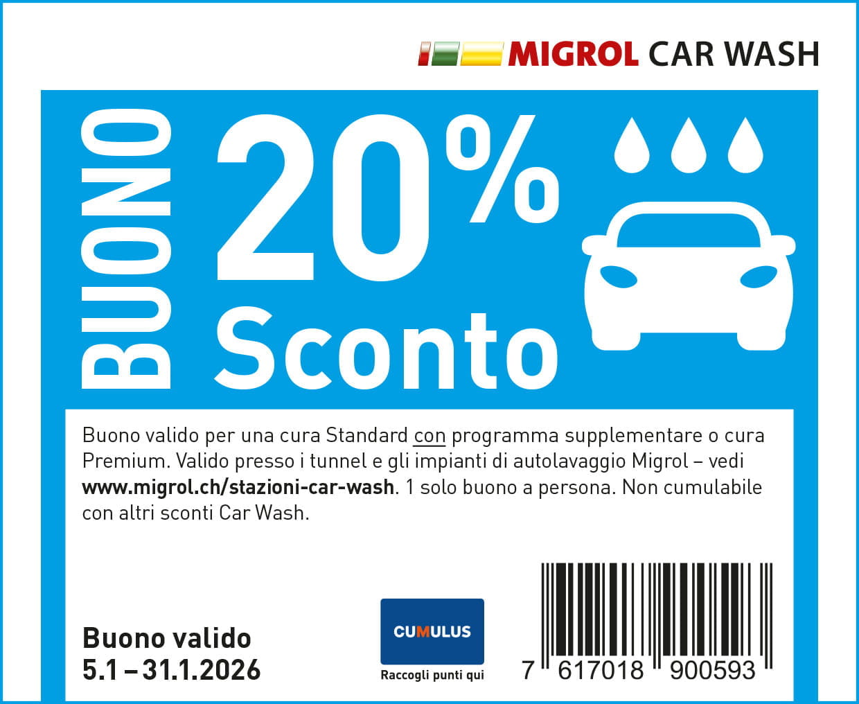 Il buono è utilizzabile presso le nostre stazioni Car Wash entro il 31.01.2026.